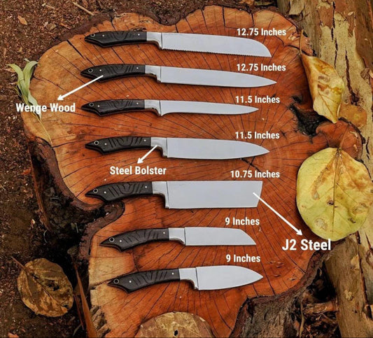 Handmade High Carbon Steel Chef Knife Set – 6-Piece with Bone Handles