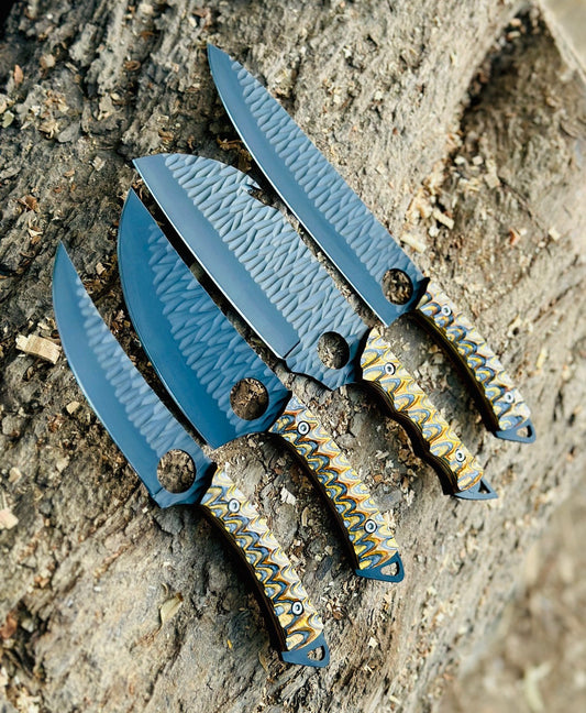 Custom Handmade 4-Piece Black Kitchen Knife Set with Colorful G10 Handles