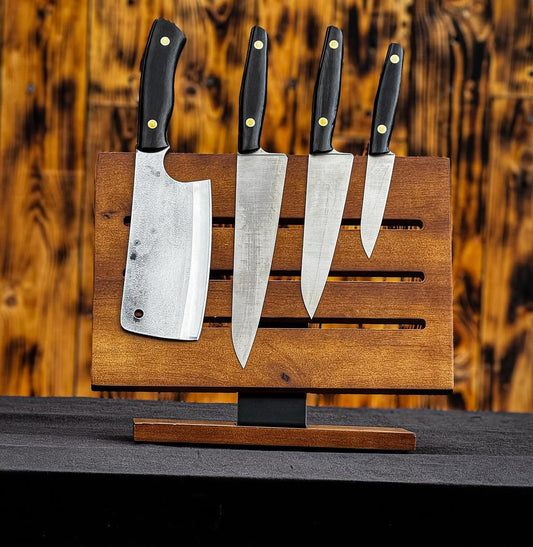 Handmade Best Kitchen Knife Set - High Carbon Steel Blade with Wooden Stand