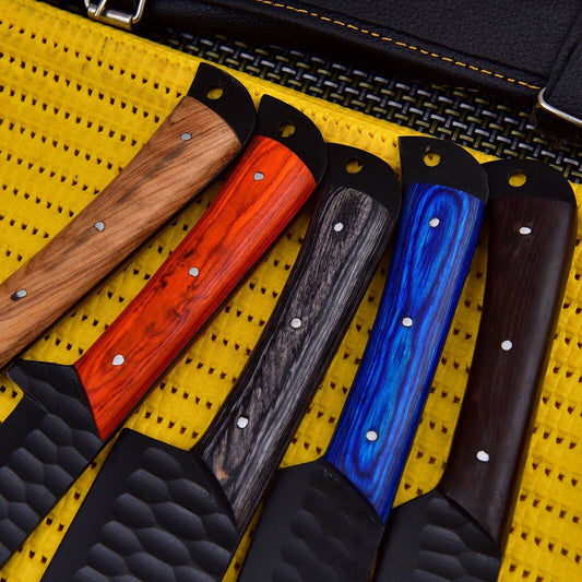 Hammered Black Chef Knife Set – 5 Piece Kitchen Knives with Multi-Color Handles