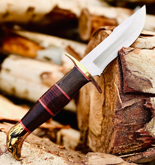Eagle Head Bowie Knife – Handmade D2 Tool Steel with Leather Sheath