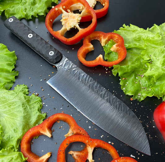 Japanese Santoku Chef Knife – Hammer Forged Blade with G10 Handle