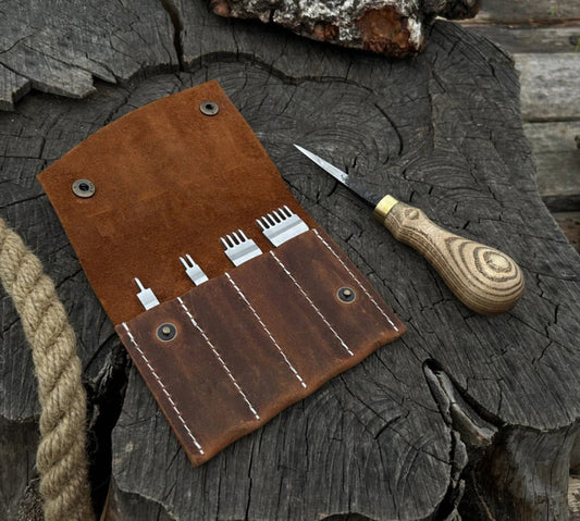 Leather Craft Punch Tool Set with Stitching Awl – Handmade with Leather Case