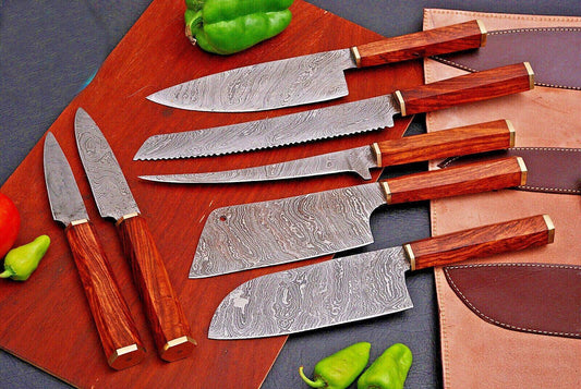 Japanese Chef Knives – Damascus Steel Set with Wood Handles | Gift for Chef