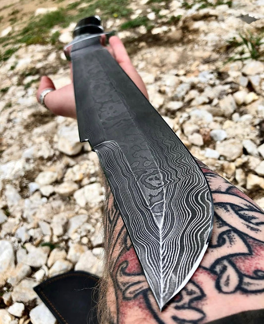 Predator Bowie Knife | Custom Handmade Damascus Steel with Leather Sheath