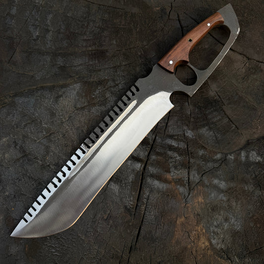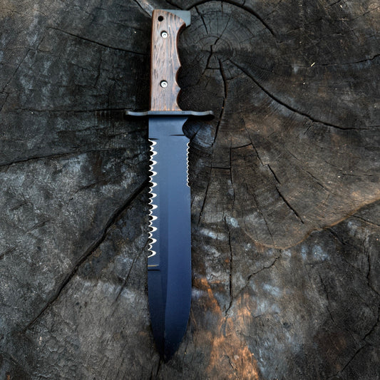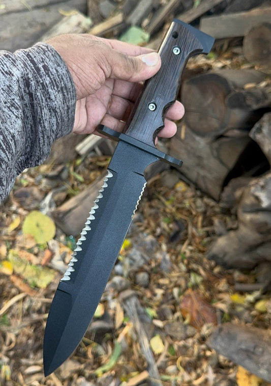 Serrated Back Bowie Knife – Handmade Full Tang Knife with Wood Handle