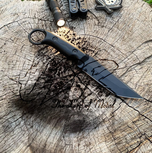 Tanto Blade Tactical Knife | G10 Handle EDC Ring Knife | Stealth Black UBR