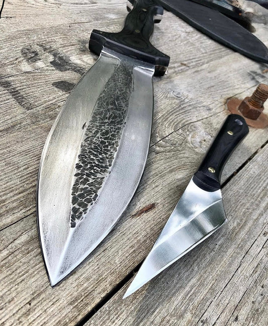 Smatchet Knife | Handmade Forged Leaf Blade with Leather Sheath