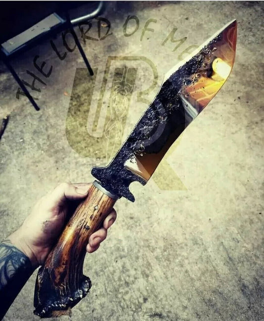 Stag Horn Bowie Knife - D2-Tool Steel Hunting Bowie Knife with Stag Horn Handle