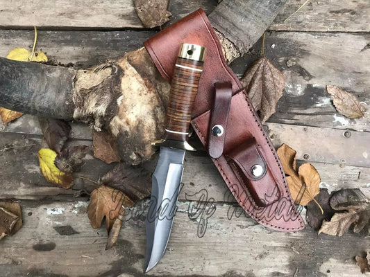 SOG Knife – Handmade D2 Steel Hunting Knife Stacked Leather Handle with Sheath