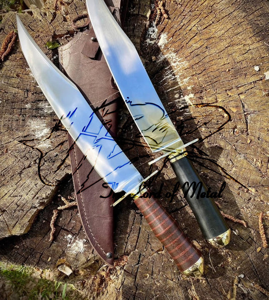 UBR Bowie Knife Pair | Mirror Polish Blades & Leather Handles Set
