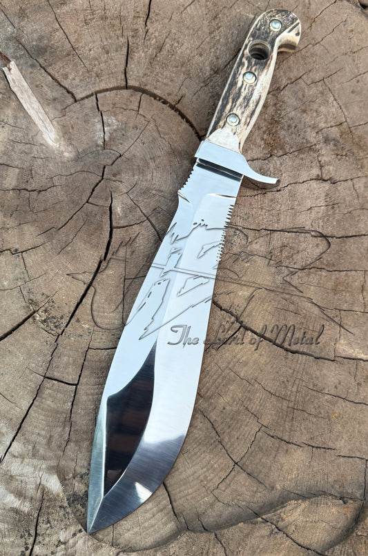 Custom Handmade Heavy Bowie Knife with Stag Antler Handle