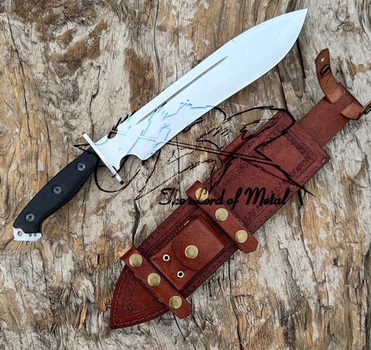 Custom Handmade Bowie Knife – Carbon Steel Blade with G10 Handle & Leather Sheath