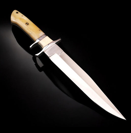 Custom Handmade Bowie Knife with Bone Handle & Leather Sheath