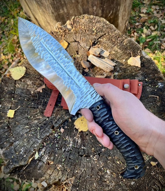 Custom Handmade Bowie Knife | Hammered Steel Blade with Micarta Handle