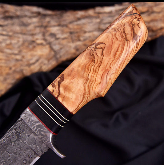 Damascus Steel Tanto Chef Knife – Handmade Tanto Blade with Olive Wood Handle