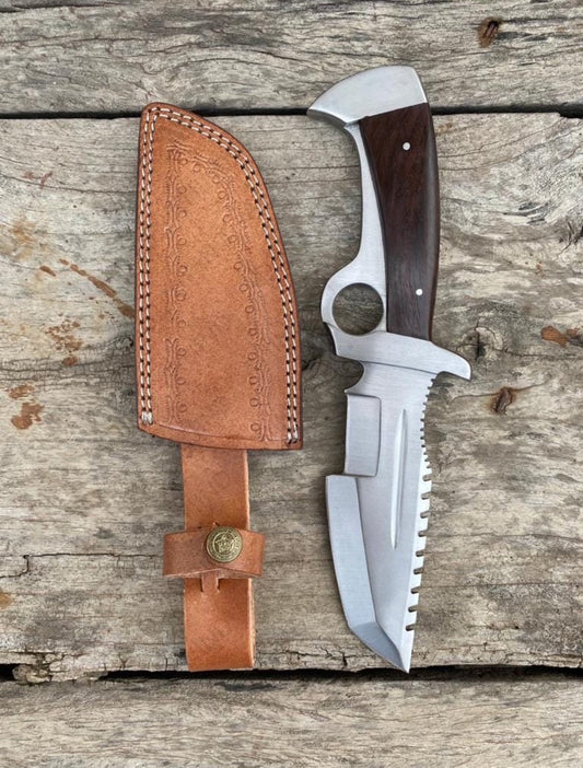 Eagle Head Bowie Knife – Handmade D2 Tool Steel with Leather Sheath