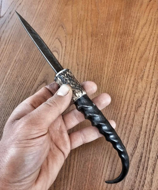 Damascus Steel Knife | Stag Horn & Ram Horn Handle Custom Handmade Knife