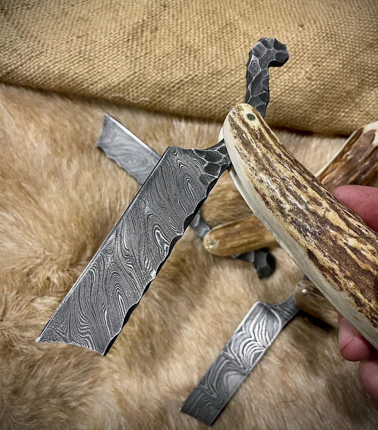 Damascus Steel Straight Razor Set | Handmade Stag Horn Shaving Razors