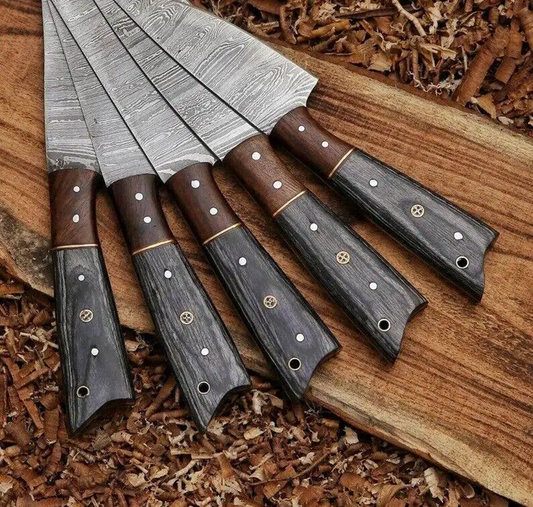Damascus Steel Professional Kitchen Knife Set with Ebony & Rosewood Handle – Full Tang Chef Set