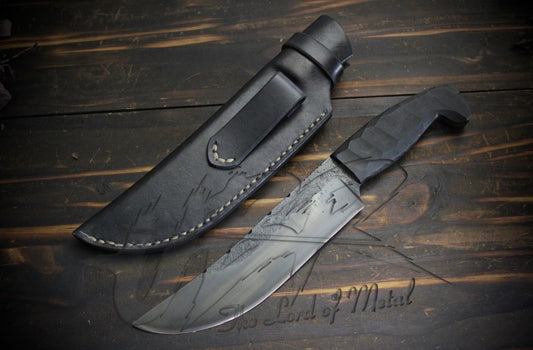 Black Forged Survival Knife – Handmade Tactical Blade with Leather Sheath